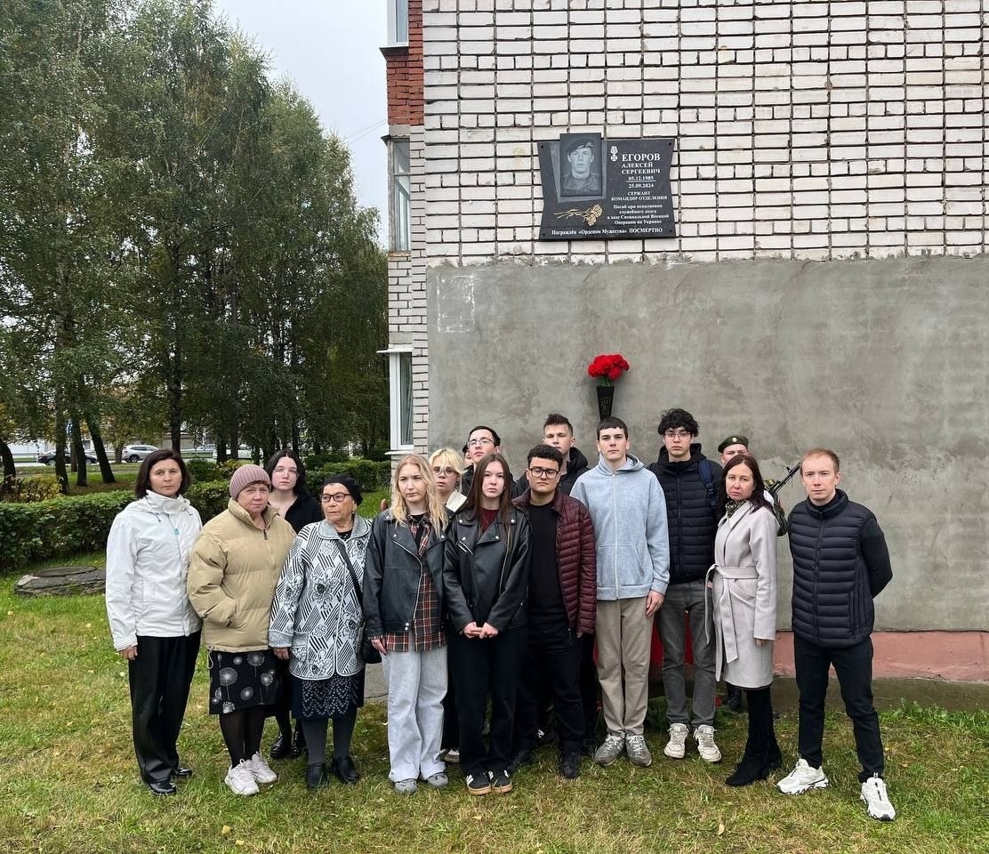 Сегодня студенты 4 корпуса вместе с заведующей учебной частью Татьяной Солодовниковой и социальным педагогом Ларисой Григорьевой приняли участие в открытии мемориальной доски, посвященной выпускнику нашего учебного заведения Алексею Сергеевичу Егорову. Он героически погиб при исполнении воинского долга в ходе специальной военной операции.