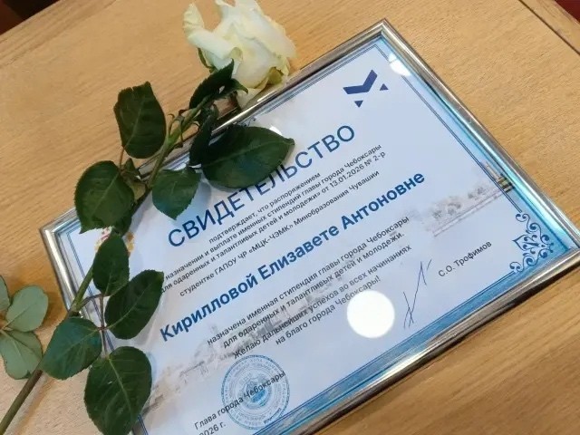 В Большом зале администрации города Чебоксары состоялась торжественная церемония вручения свидетельства о назначении Именной Стипендии главы города Чебоксары. Среди лауреатов — наша студентка группы Са1-24 Кириллова Елизавета, которая продемонстрировала выдающиеся достижения!